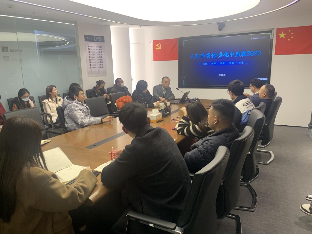 為更好認(rèn)識(shí)房地產(chǎn)變局之下行業(yè)發(fā)展現(xiàn)狀及預(yù)期,切實(shí)提升行業(yè)知識(shí)水平,明確2023年公司投資業(yè)務(wù)的發(fā)展方向,2月24日下午,盛和房產(chǎn)組織召開(kāi)《行業(yè)總結(jié)與市場(chǎng)研判》分享交流會(huì)。特邀資深戰(zhàn)略定位與管理咨詢專家——上海克而瑞信息技術(shù)有限公司企業(yè)戰(zhàn)略部總經(jīng)理劉晨光作專題輔導(dǎo)。盛和房產(chǎn)及全資、控股子公司全體員工參加。